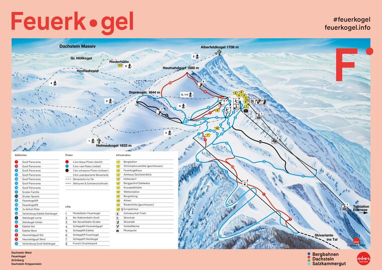 Der Feuerkogel, Oberösterreichs schönstes Hochplateau, lädt mit modernen Liftanlagen, familienfreundlichen Pisten, moderner Beschneiung, einem fantastischen 360 Grad-Panoramablick auf Dachstein und Seenregion, gemütliche Hütten und vielen Sportmöglichkeiten zu einem unvergesslichen Schnee-Erlebnis im Herzen des Salzkammergutes!