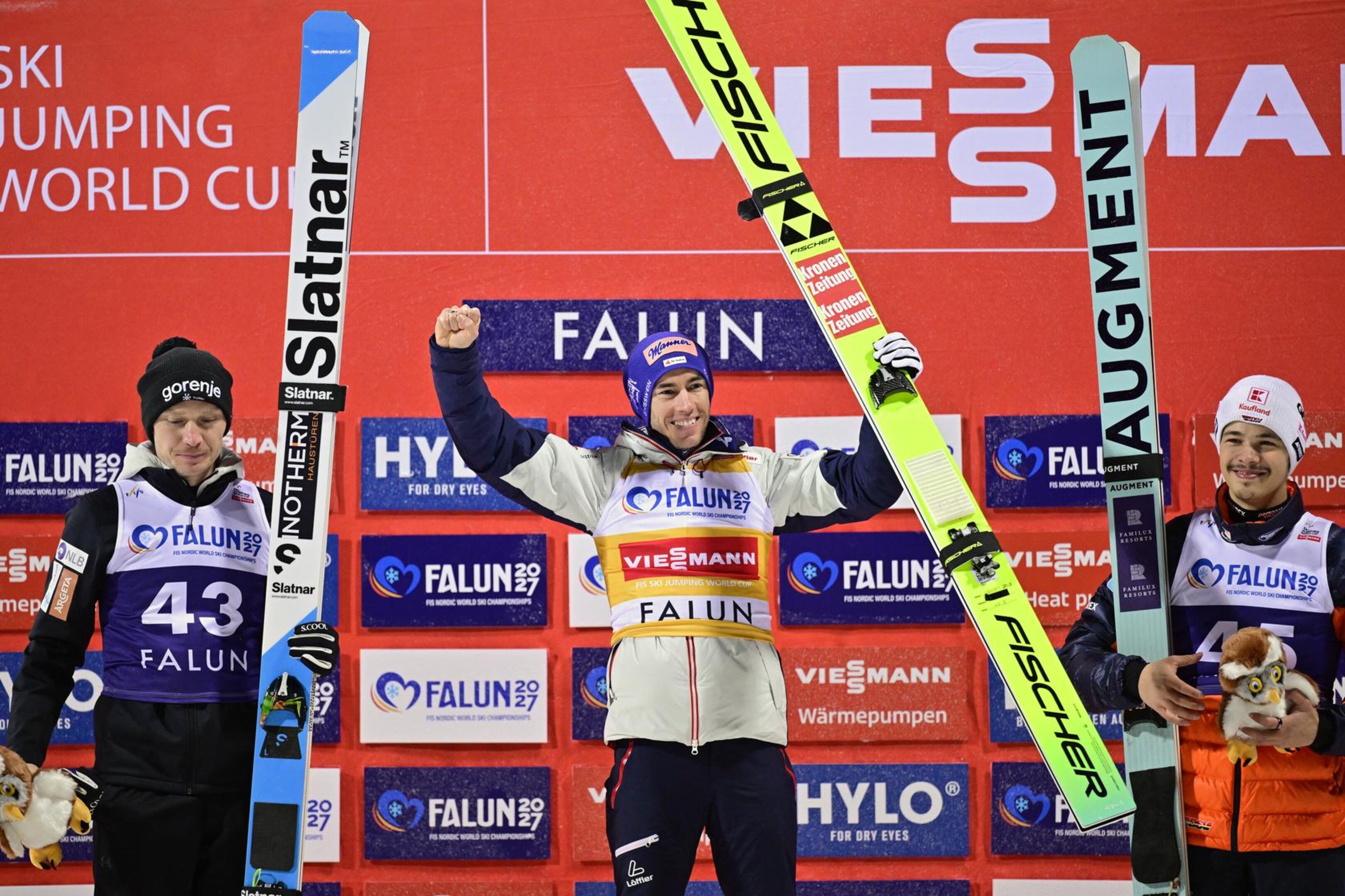 Mit Startnummer 46 zum 46. Weltcupsieg: Stefan Kraft sichert sich in Falun mit seinem Sieg die Bestmarke für die meisten Weltcuppunkte.